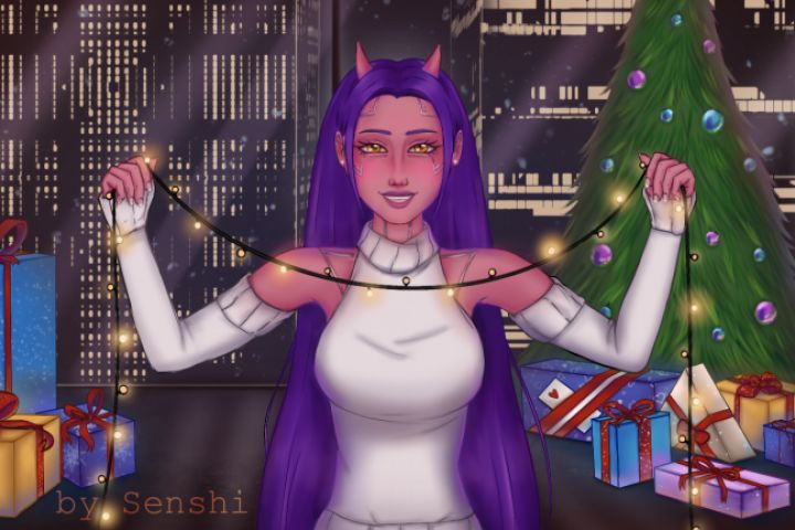 Иллюстрация-обложка для баннера в новогодней тематике моего персонажа, девушку зовут Номи