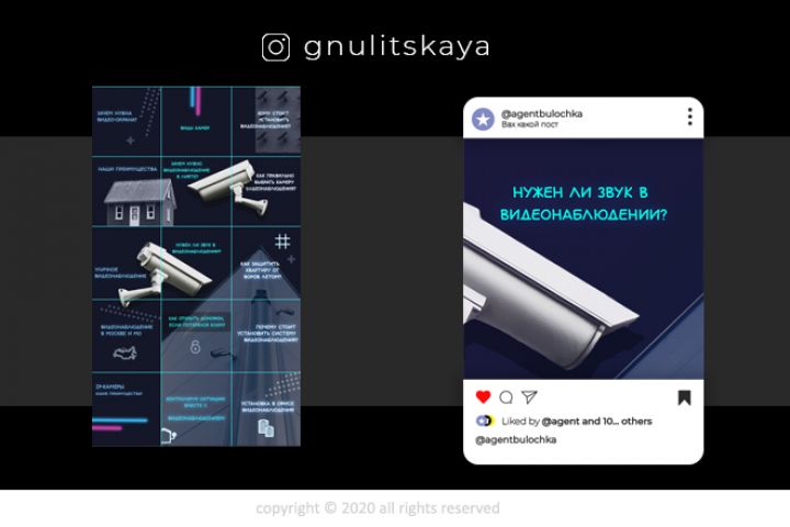 Инст аккаунт по продаже видеонаблюдения. Бесконечная лента. Предоставляю psd форматы для удобного редактирования по завершению работ. До 3 правок. Пишите, inst @gnulitskaya :-)
