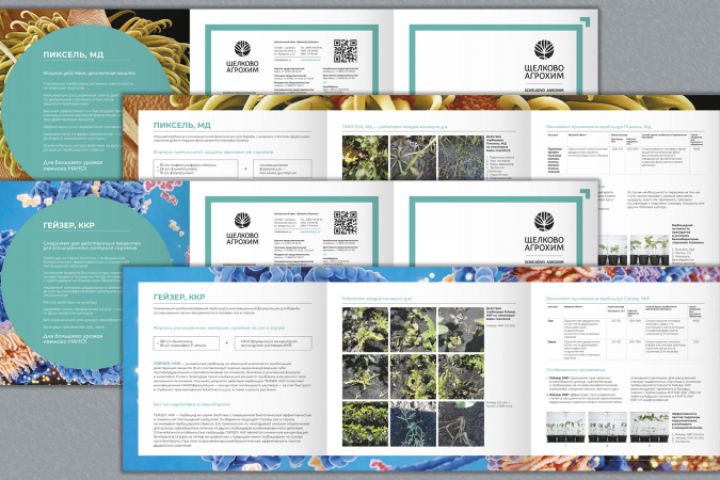 Буклеты о гербицидах: Пиксель, Гейзер. Формат: 200 х 200 мм, 2 фальца.