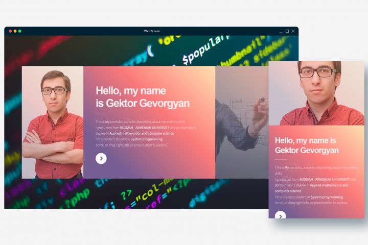 Мой личный сайт в стили визитки. С горизонтальным прокручиванием.