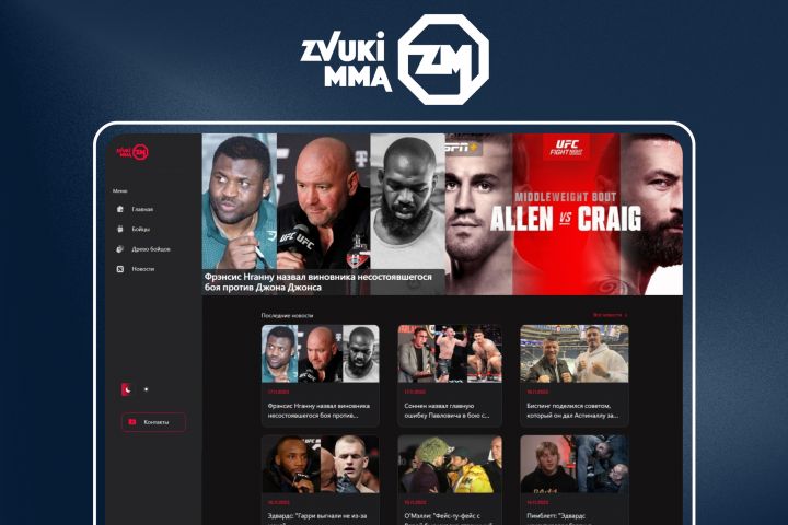 ZvukiMMA - является сайтом популярного канала в Youtube специализирующегося на обозревании событий в мире боевых искусств.