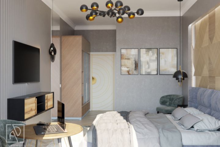Данный гостиничный номер выполнен в современном стиле. В проекте мы постарались создать идеальное сочетание рабочей зоны и пространства для отдыха, чтобы учесть интересы любого гостя. В качестве декора были выбраны стеновые деревянные фрезерованные панели, а для большей выразительности по периметру добавлена светодиодная подсветка. Получился светлый, но не лишённый контрастов, интерьер.