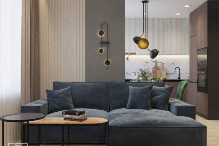 Квартира для семейной пары оформлена в светлых, нейтральных тёмных оттенках. Главной отличительной чертой проекта является максимальное использование реек. В данном проекте рейки представлены как натурального деревянного исполнения, так и выкрашенные в цвет стен. Кроме этого отделка фасадной части мебели поддерживает декоративное решение всей квартиры.
