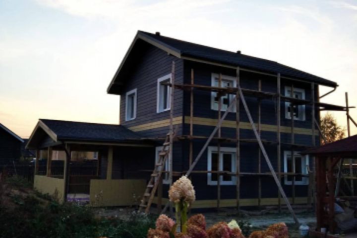 Конструктивно дом расположен на ленточном фундаменте, который был проработан до мелочей. Пол выполнен по технологии пола по грунту. Несущие стены представляют собой многослойную конструкцию из пеноблока, утеплителя, ветрозащитных мембран и фиброцементного сайдинга компании Grand Line коллекции Cedral. Перекрытия из многопустотных плит перекрытия. Кровля выполнена с покрытием гибкой черепицей компании Технониколь коллекции Shinglas.