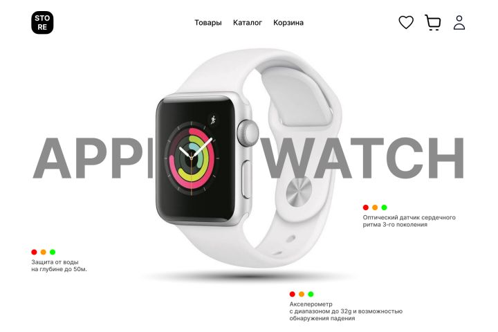 Дизайн с акцентом на товар и его характеристики. Всё самое главное удобно расположено на первом экране.