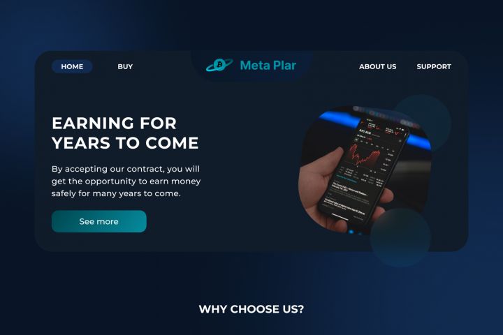 Футуристичный дизайн с интересной концепцией меню. Используется эффект размытия заднего фона на объектах, а также синие градиенты которые передают надёжность и технологичность.
