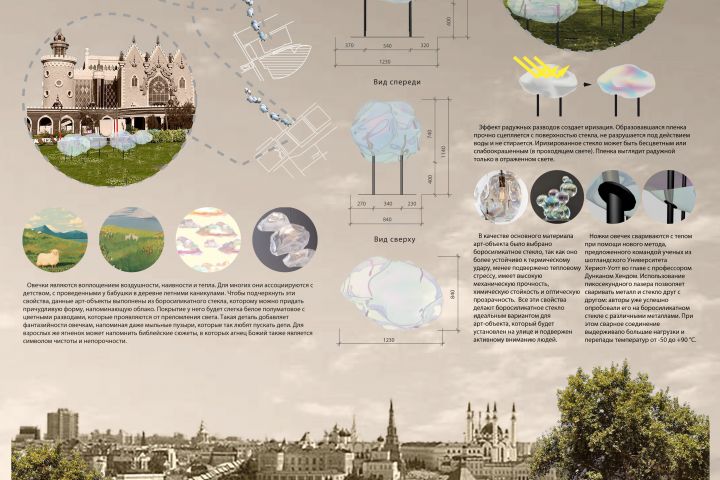 Разработка арт-объекта для парков города. Овечки "приходят" только в те парки, где была проведена уборка территории горожанами. Корпус выполнен из боросиликатного стекла с иризацией, за счет чего создается радужный эффект.