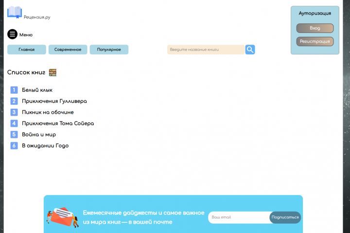 Сайт с рецензиями на различные книги от разных пользователей. На сайте можно создать оценить любую книгу и создать собственную рецензию.