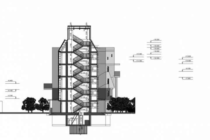 Энергоэффективный жилой дом средней этажности. Разрез 1-1