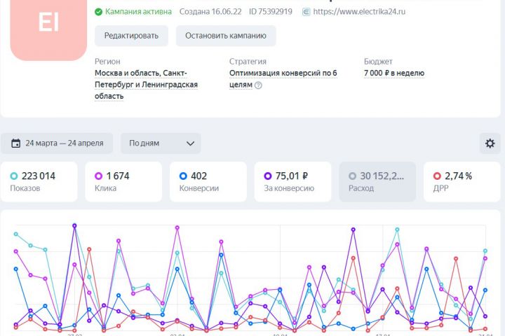 Интернет-магазин Электрики. Яндекс Директ