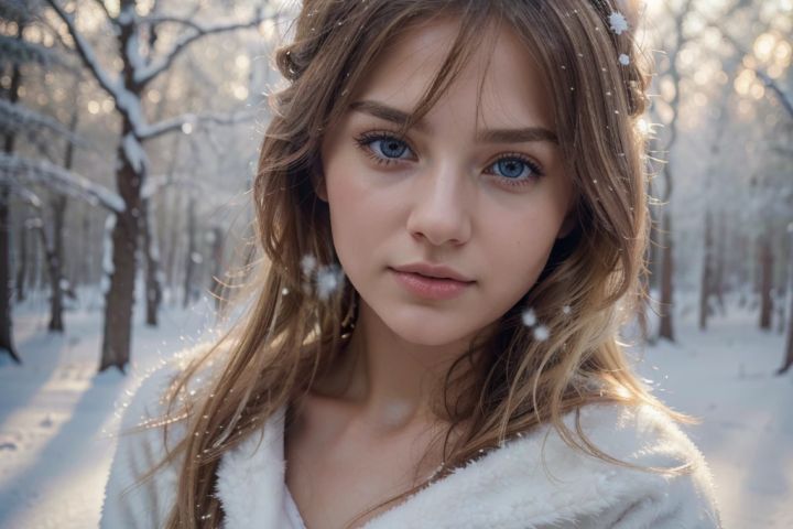 Промпт к изображению - (best quality,4k,8k,highres,masterpiece:1.2),ultra-detailed,(realistic,photorealistic,photo-realistic:1.37), Russian girl, beautiful detailed eyes, beautiful detailed lips, extremely detailed eyes and face, long eyelashes, blonde hair, fur coat, morning sunlight, snowy landscape, soft and natural light, serene expression, elegant pose, winter forest, delicate and soft colors, realistic skin tone, gentle snowflakes falling, subtle warmth in the scene.