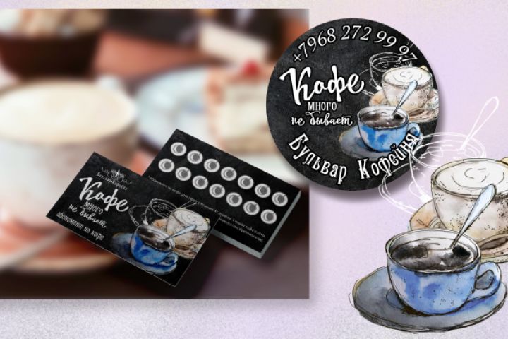 Разработка макета купона кофе. Акварель плюс векторная графика