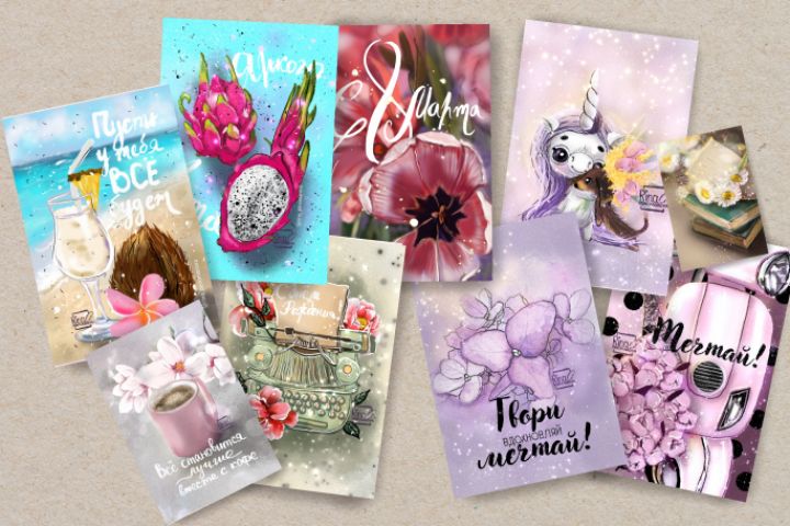 Макеты для открыток нарисованы в программе Infinite Painter