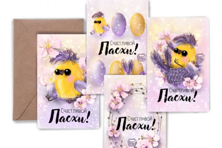 Яркий набор открыток на Пасху Нарисованы в программе Infinite Painter