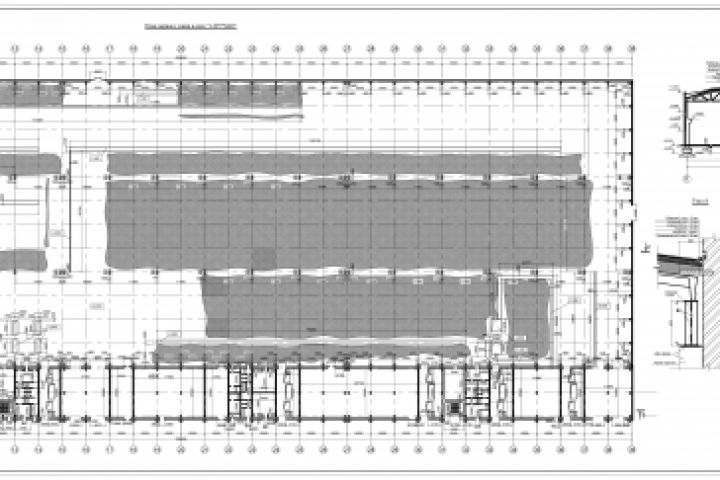 Обмерный чертёж производственного здания с нанесением выявленных дефектов и повреждений конструкций в рамках технического обследования