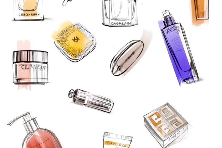 Иллюстрация косметики для оформления публикации в журнале. Диджитал формат