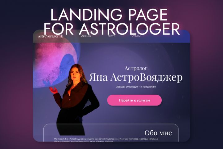 Заказчик обратился ко мне с просьбой сделать уникальный и интересный сайт для продвижения своих услуг. После анализа конкурентов было принято решение сделать сайт в "космической" тематике, т.к космос и звезды напрямую связаны с астрологией. В свою очередь конкуренты используют некачественные и шаблонные сайты. В результате получился полностью отвечающий всем запросам заказчика и передающий её настроение лендинг.