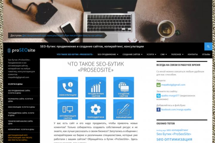 Создание и последующая доработка сайта веб-студии ProSeoSite.com.