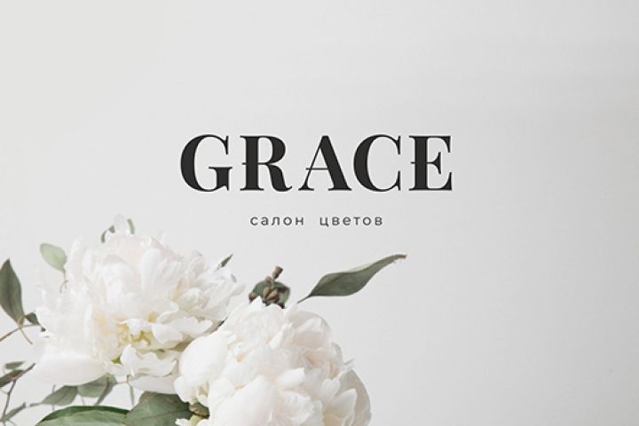 Для Цветочного магазина GRACE был разработан уникальный шрифтовой логотип, наклейки и визитки