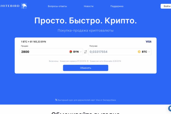 Сервис обмена криптовалют помогает легально продать или купить криптовалюту с использованием карт VISA быстро, просто и выгодно.