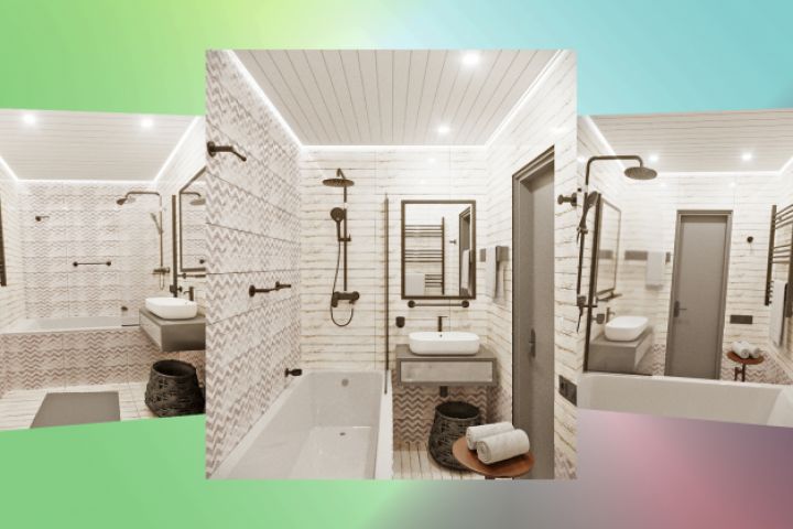 Определение концепции и подбор плитки ванной комнаты. Отделочные материалы были подобраны из каталога местного строительного магазина "Новосел".