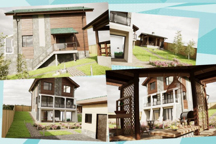 Заказчик предоставил фото своего дома, дал описание своих предпочтений по стилям и материалам, охарактеризовал участок дома; стояла задача оформить фасад дома.