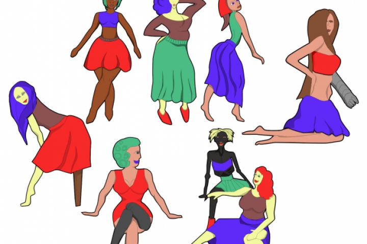 Векторная иллюстрация из семи стикеров на тему "Бодипозитив"
