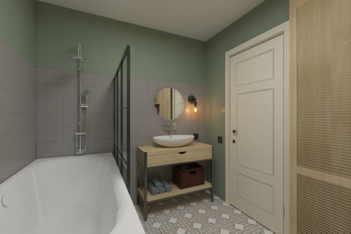 ванная в 2х комнатной квартире для молодой женщины.