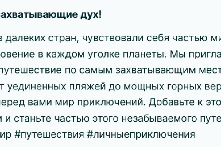 написание рекламного поста для турагенства