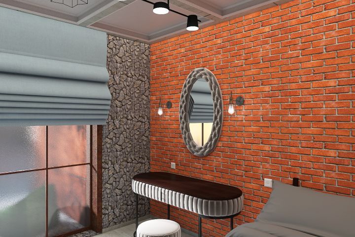 Данный дуплекс был сделан для семьи из 3х человек. Есть зоны кухни и приема пищи, зона отдыха на балконе, зона просмотра ТВ. На втором этаже родительская спальня и детская для подростка девочки. Расчет энергетики пространства и личной энергетики всех членов семьи плюс пожелания заказчика позволили создать очень оригинальное зонирование и отделку- плитка под гравий, деревянные панели, фактура кирпича и бетона, панорамные окна, минимализм в использовании мебели. Особым условием было не закрывать ничем панорамное окно в ванной для вида из окна на горы и внесение в помещение большого кол-ва света не только открытыми панорамными окнами , но и светильниками. Использовались дополнительные световые треки при оформление потолка и настенные светильники в стиле гранж.