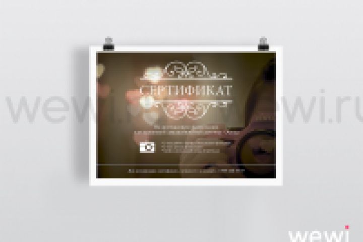Подарочный сертификат на фотосессию - второй вариант, в горизонтальном формате.