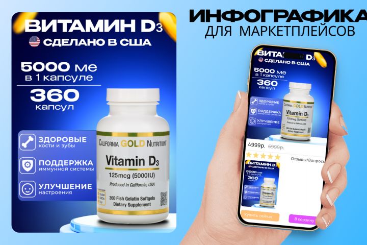 Карточка товара: Витамин D3 5000 IU Название товара Витамин D3 Фотографии товара Основное изображение упаковки