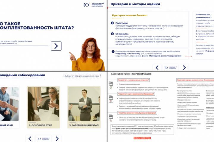 Презентация-листалка с основной информацией, которая понадобится HR сотрудникам в процессе работы.