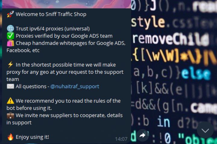 Действующий проект по автопродаже товаров для аудитории в сфере арбитража трафика на любых платформах. (@SniffTraffic_Shop_Bot)
