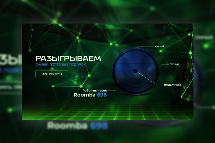 По ТЗ был следующим : "Разыгрываем робот-пылесос Roomba 698! Ищи подробности на канале".
