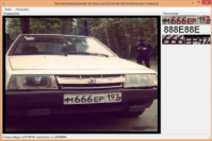 Представляет из себя незавершенный проект (вероятность распознавания 70%). Может быть доработан до уровня контроля ТС при въезде/выезде парковки.