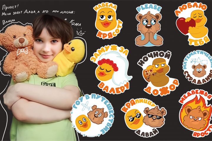 "Кряка и Валера" авторский стикерпак, основанный на историях про приключения игрушек.