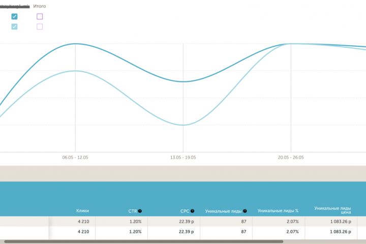 У клиента работали собственные кампании. Эффективность кампаний измерялась клиентом путем примерного соотношения вложенных в рекламу денег к примерному увеличению обращений от среднего показателя.