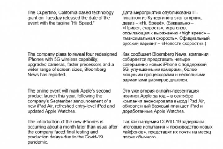 Перевод новостной заметки о презентации новой (на тот момент) модели iPhone