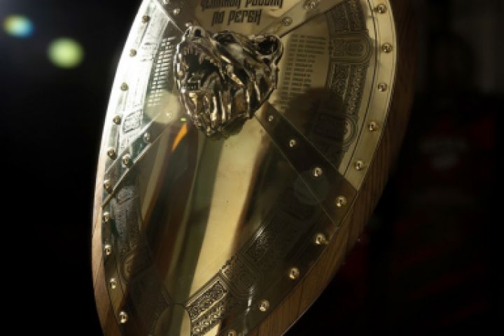Трофей выполнен в форме традиционного Щита русского богатыря, который украшен специально разработанной системой регбийных символов, стилизованных под древнерусский стиль. На металлической пластине выгравированы названия команд-чемпионов с 1992 года, а венчает композицию голова медведя – символа и талисмана российского регби.