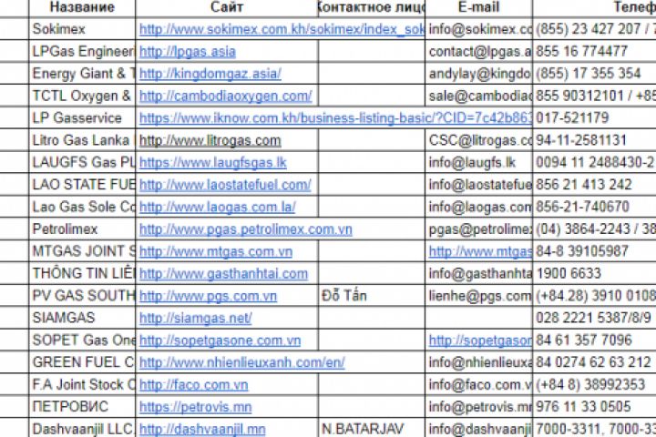 Поиск контактных данных поставщиков LPG в азиатских странах.