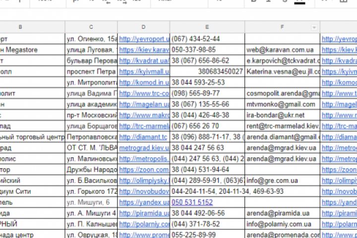 Сбор данных о ТРЦ Киева. Собрана информация о 52 действующих или планируемых к запуску торгово-развлекательных центрах Киева.