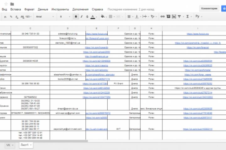 В качестве бонуса для клиента была дополнительно собрана база создателей групп Вконтакте по тематике "Forex и бинарные опционы".