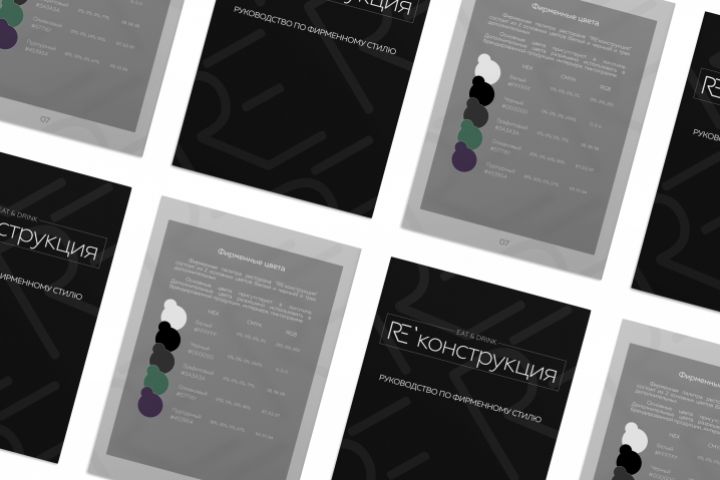 Фирменный стиль и айдентика ресторану Re'конструкция г.Омск В ходе работ: 1) разработка логотипа 2) разработка мерча 3) дизайн вывесок и меню 4) дизайн брендбука