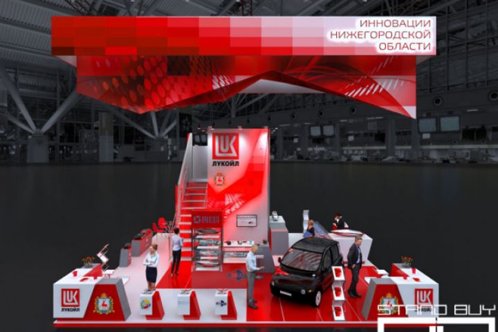 Данный стенд проектировался в высокотехнологичном конструктивистском стиле. Простые, лаконичные объемы сочетаются здесь с обилием подсветок, подчеркивающих стилистику хай-тека. Нижегородская область – крупный промышленный центр с развитым машиностроительным комплексом, нефтехимией, металлургией, химией, фармацевтикой. Кроме этого, в регионе имеется высокий научно-технический потенциал оборонно-промышленных предприятий. Ассоциация инновационных регионов России проводит ежегодный мониторинг инновационной деятельности регионов, показывающий уровень инновационного развития. Данные за 2015 год показали, что область делит четвертое место вместе с Республикой Татарстан по показателям индикаторов инновационной деятельности, превышая на 54 % средний показатель. Уникальные промышленные производства и научно-исследовательские подразделения, благоприятное геополитическое положение, мононациональный состав населения делают Нижегородскую область достаточно инвестиционно и инновационно привлекательной.