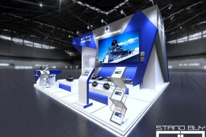 Создание Концерна «Моринформсистема-Агат» – одно из значимых событий, произошедших в ходе образования интегрированных структур в оборонно-промышленном комплексе. Ядром Концерна стало Научно-производственное объединение «Агат». Именно здесь на протяжении более шестидесяти лет разрабатывались и производились автоматизированные системы и комплексы управления боевой деятельностью подводных лодок и надводных кораблей Военно-Морского Флота, а также системы управления стрельбой всеми видами корабельного оружия. В российском кораблестроении Концерн «Моринформсистема-Агат» является головной организацией по информационным системам и технологиям, системному инжинирингу корабельных информационно-вычислительных средств, вопросам электромагнитной совместимости радиоэлектронных средств и размагничивания, системам управления стрельбой крылатыми и баллистическими ракетами морского базирования, боевым информационно-управляющим и интегрированным системам управления надводных кораблей и подводных лодок. В процессе проектирования выставочного стенда для Концерна «Моринформсистема-Агат» мы стремились применить прежде всего формы, характерные для современного кораблестроения. В частности — высокотехнологичного, военного. По нашей задумке у сооружения появились резкие угловые грани, довольно масштабные, и, при определенных ракурсах формирующие довольно агрессивный вид. Однако, общая обтекаемость форм и заостренность, возможно, вызовут у зрителя ассоциации с высокотехнологичным и высокоточным оружием. В конструктивный системе архитекторы использовали конструктор Maxima, сварные каркасы, облицовку ЛДСП, стекло.
