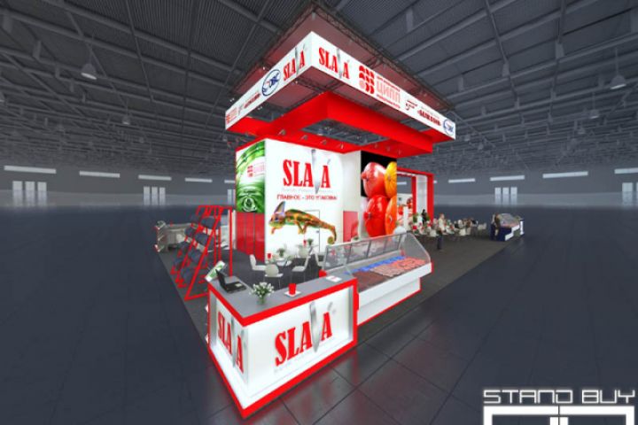 Компания НПО «СЛАВА» была создана в мае 2004 года и с тех пор занимает лидирующую позицию в упаковочной отрасли, не останавливаясь на достигнутом, активно развивается, каждый год разрабатывая и запуская в производство новые виды упаковочной продукции. Общее композиционное построение выставочного стенда весьма минималистично, что обусловлено высокой функциональностью стенда. Планировочная структура стенда обеспечивает максимальную функциональность за счет геометрически четкого зонирования. Цветовое решение выдержано в фирменных цветах компании и представляемых ей на российском рынке брендов. По периметру расположены другие бренды, участвующие в выставке совместно с НПО «СЛАВА», и строго в той же последовательности их логотипы расположены на огромном подвесе, обрамляющем верхний периметр стенда. Основные материалы — ЛДСП, конструктор Maxima с баннером, МДФ с покраской.