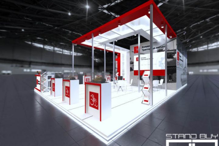 Машиностроительно-индустриальная группа, предприятия которой находятся в управлении ООО «Компания корпоративного управления «Концерн «Тракторные заводы», является одним из крупнейших российских интеграторов научно-технических, производственно-технологических и финансовых ресурсов в машиностроении, как в России, так и за рубежом. С 2006 года в состав группы вошли 17 системообразующих производственных предприятий, на которых трудятся более 20 тысяч человек из 10 субъектов Российской Федерации, а также дальнего и ближнего зарубежья, специализированные 4 инжениринговые и 3 торгово-сервисные компании. Созданная вертикально-интегрированная модель производства позволяет «Тракторным заводам» обеспечить полный жизненный цикл выпускаемой продукции — от научно-исследовательских и опытно-конструкторских разработок, производства металлов и запчастей до маркетингово-сбытовых операций, а также послепродажного сервисного обслуживания. Приступая к проектированию выставочного стенда для концерна такого уровня, мы сфокусировались прежде всего на том, как наиболее наглядно отобразить высокотехнологичную направленность его деятельности. Но также и необходимо было учесть и военную тематику выставочного мероприятия — поэтому среди образов на стенде появились силуэты танков. Естественно, в качестве основных материалов мы применили метал и стекло. Оптимально расположили подиумы для образцов продукции. Цветовое решение выдержанно в рамках фирменного стиля компании. Основные материалы — ЛДСП, конструктор Maxima с баннером, МДФ с покраской, стекло, оргстекло.