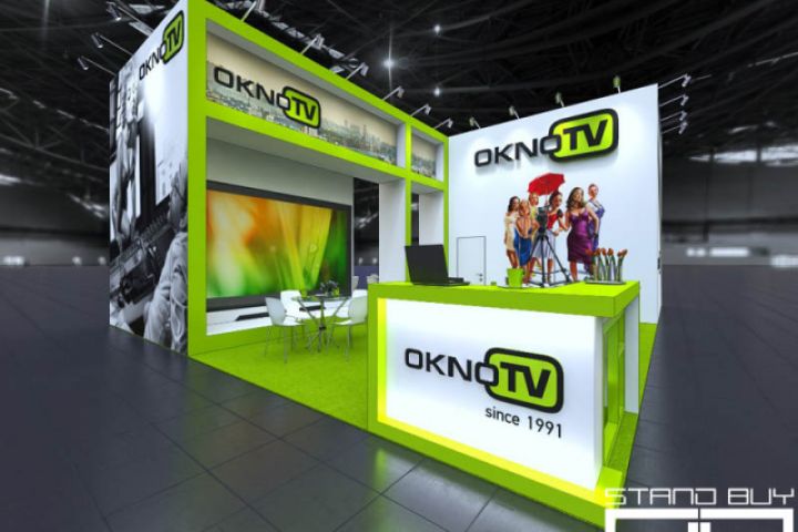 Компания «Окно ТВ» является на сегодняшний день ведущим системным интегратором, можно даже сказать лидером в области технического оснащения телевизионных комплексов. Основанная в 1991 году сегодня компания уже крупнейшая в сфере строительства и модернизации телеканалов. Данное проектное решение выставочного стенда компании «Окно ТВ» представляет собой строгую геометрическую композицию. Одним из пожеланий заказчика, в процессе переговоров, было пожелание использования рисунков или фото в стиле pin-up, причем в качестве основного мотива объекта. Мы решили выделить под это боковые глухие поверхности стенда. В центральной же части мы расположили огромное окно, за которым при помощи стекла сымитировали как-бы и окно и плоскость телевизионного экрана одновременно — тут уж полностью на выбор смотрящего, каждый увидит что-то свое. Цветовое решение выдержанно в рамках фирменного стиля компании. Основные материалы — ЛДСП, конструктор Maxima с баннером, МДФ с покраской.