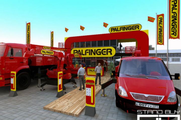 Многие годы компания PALFINGER является ведущим международным производителем гидравлических погрузочно-разгрузочных систем. Интернациональный концерн со штаб-квартирой в Зальцбурге насчитывает более 7000 сотрудников по всему миру. Ежегодный оборот концерна - около 1 млрд. Компания PALFINGER имеет производственные и сборочные площадки в Европе, Северной и Южной Америке, а также в Азии. Инновации, интернационализация и диверсификация продуктов и услуг являются опорами стратегии концерна, позволяя занимать лидирующие позиции на мировом рынке подъемного оборудования. Компанию PALFINGER по праву считают не только лидером продаж гидравлических погрузочно-разгрузочных систем , но и лидером технологий в этой области. Около 65 процентов группы PALFINGER находится во владении семьи Palfinger. 34 принадлежит другим акционерам. 1 процент - в собственности компании PALFINGER AG. С июня 1999 года акции PALFINGER находятся в обращении на Венской фондовой бирже. Выставочный стенд компании Palfinger разработан нами в несколько концептуальном виде, так как визуально отобразить всю многогранную историю предприятия в одном небольшом объекте просто не представляется возможным. Точнее сказать можно, но это будет уже весьма сомнительное с художественной точки зрения произведение. Наш проект представляет собой объемно-пространственной решение в современном стиле с применением бионических форм. Мы намерено отказались от «правильных» геометрических форм в пользу плавных линий и скругленных углов. Основные цвета фирменного стиля компании — красный, оранжевый, черный. Основные материалы — конструктор Maxima с баннером, ЛДСП, оргстекло. Закрытые зоны представляют собой просторную переговорную, подсобное помещение для персонала, и складское помещение для хранения рекламной продукции.